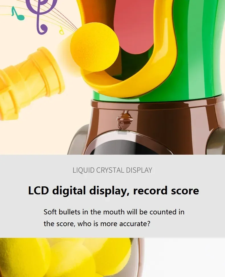 O LCD registra a pontuação Quando uma bola de espuma atinge a língua do alvo, ela emitirá um som dinâmico e contará 1 ponto na exibição da pontuação (só precisa de 3 pilhas AA) Um desafio emocionante para as crianças competirem com pais ou amigos Ótimo treinamento competitivo para multijogador ou solo Competição e aumenta o relacionamento entre pais e filhos.
