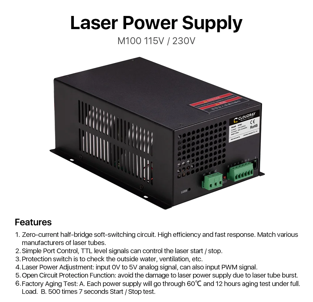 Cloudray-Fonte de Alimentação Laser para Gravação e Corte, CO2, M100W, 80-100W
