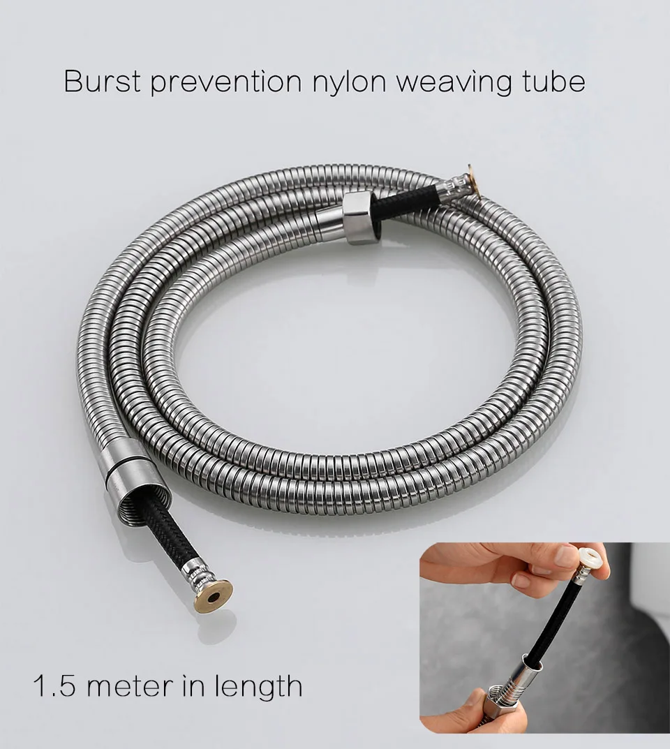 -Material de aço inoxidável, mangueira interna de tecelagem de náilon, alta pressão de água resistente.