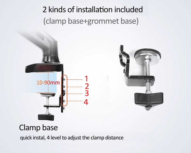 instalação de braçadeira: espessura da mesa dentro de 10-90 mm
