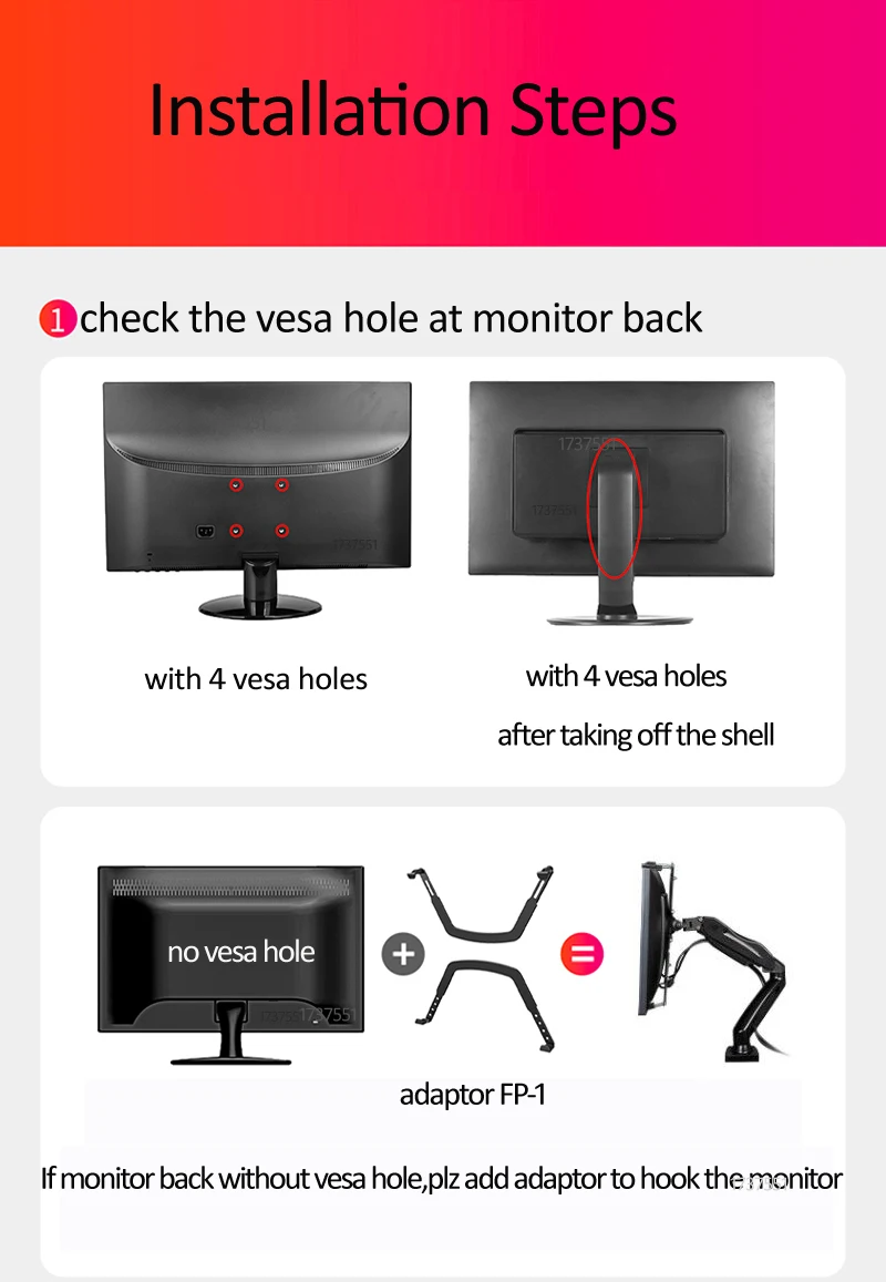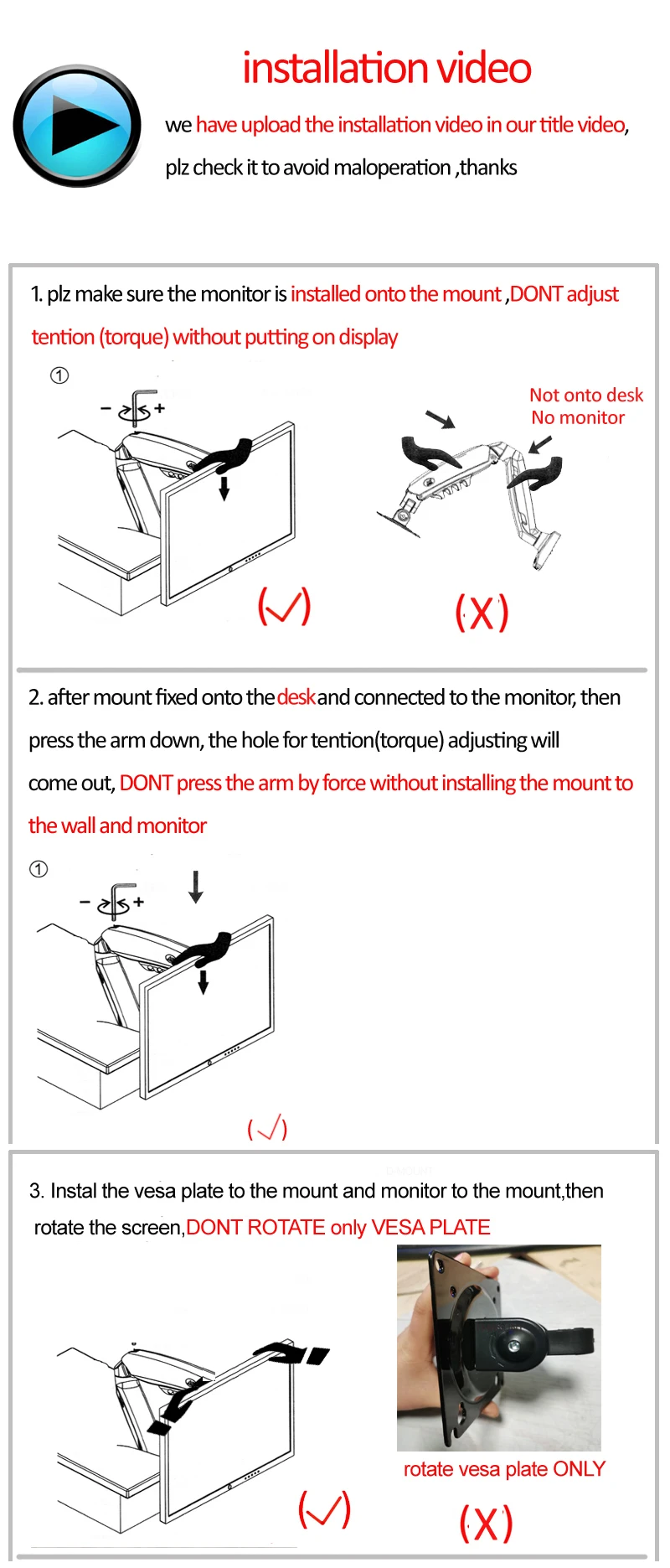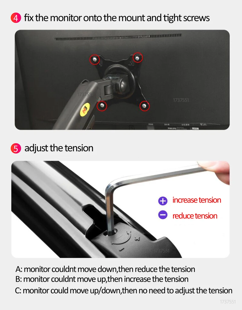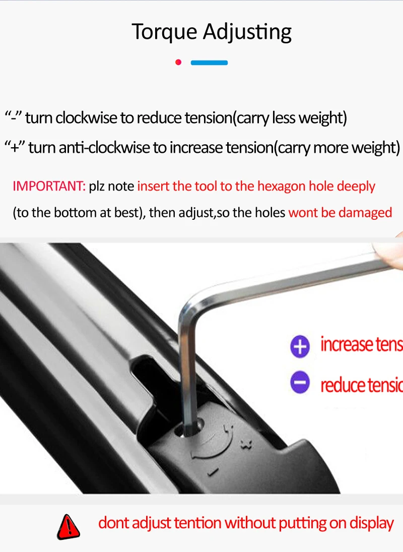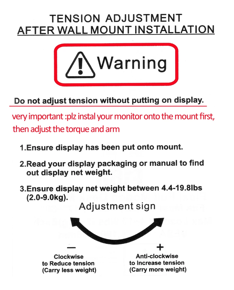 Carga: 2-9kg paracada tela(por favor, certifique-se de que sua tela esteja dentro dessa faixa ou a mola a gás da montagem não funcionará)