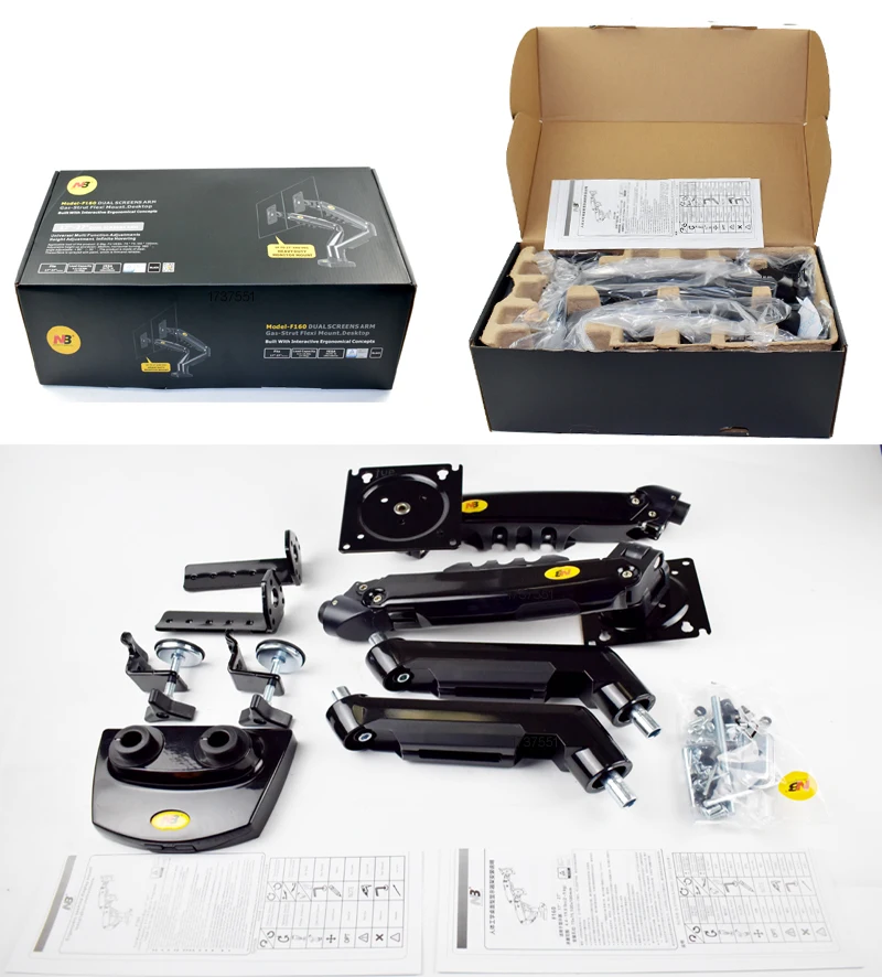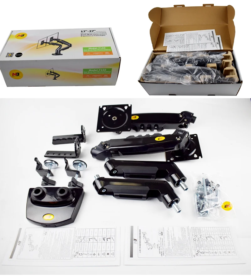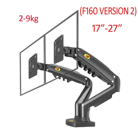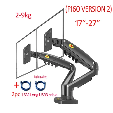 Nb nova mola a gás f160 17 “-27” 30 “suporte de monitor duplo braço desktop 360 girar suporte de computador 2-9kg suporte de monitor porta usb3.0