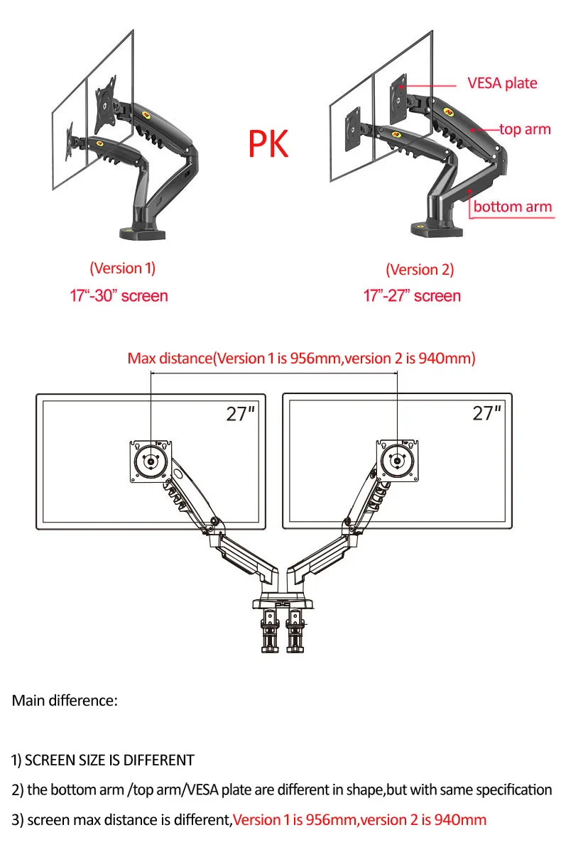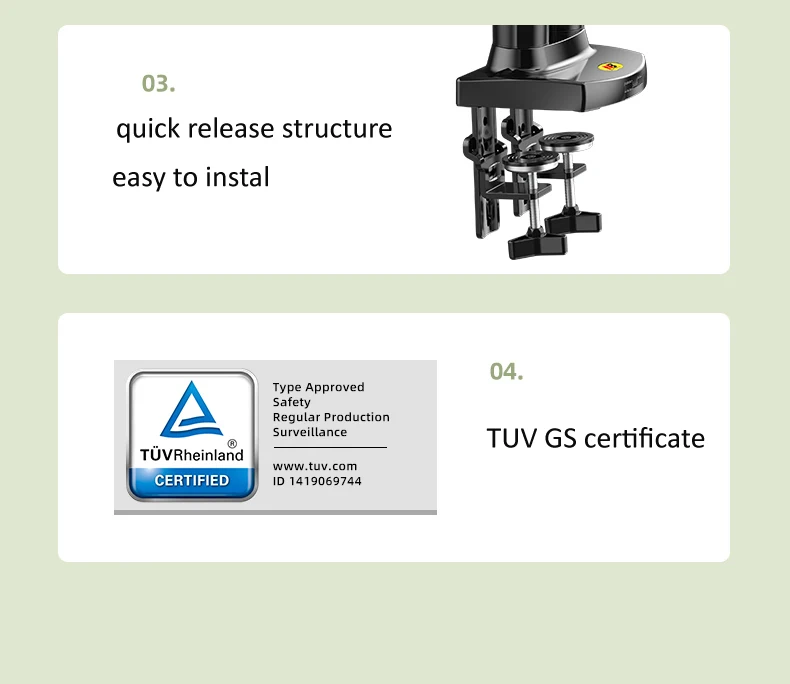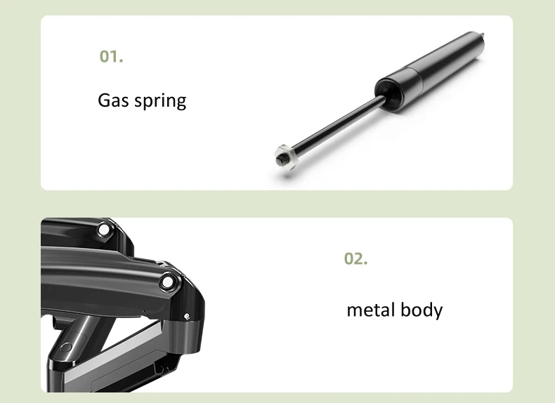 2) Parâmetros técnicos——–Suporte de mesa com mola a gás de tela dupla