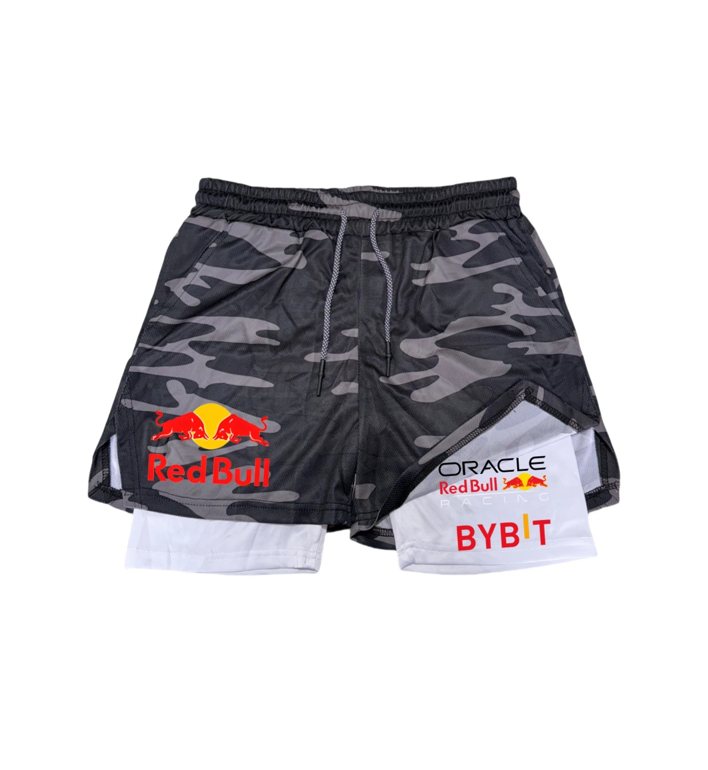 New Men’s 2-in-1 Red Bull Sports Shorts Breathable Casual Quick Drying Double-layer Summer Running M-5XL