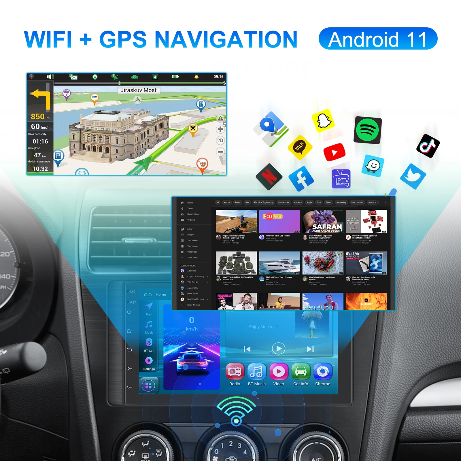 ●1080P de alta definição: tela de toque de capacitância total para fácil operação, interface de usuário bem projetada apenas para carro