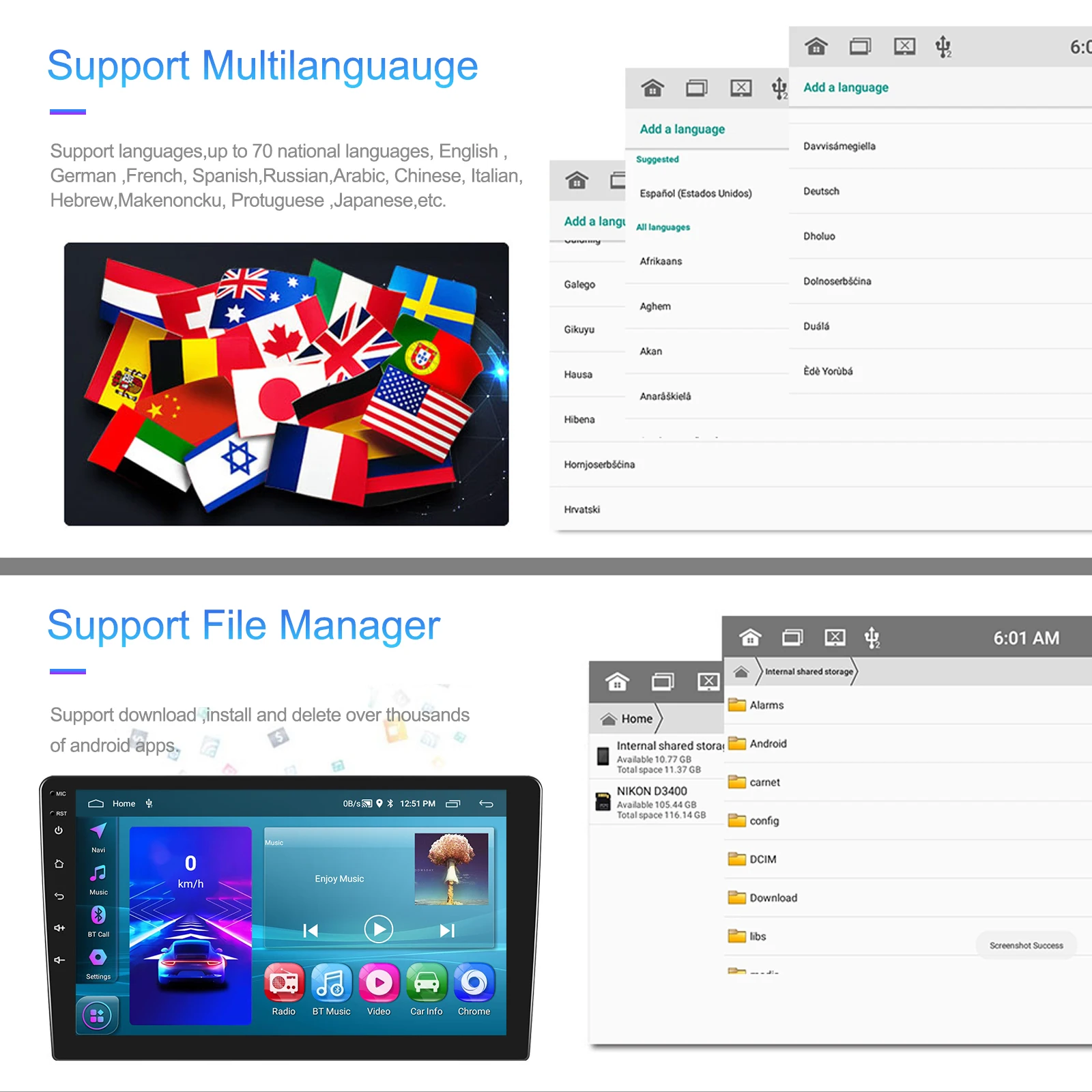 ●1080P de alta definição: tela de toque de capacitância total para fácil operação, interface de usuário bem projetada apenas para carro
